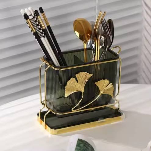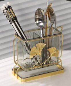 লাক্সারি গ্লাস ইউটেনসিল হোল্ডার 🍽️ | গোল্ড গিঙ্কো লিফ ডিজাইন 🌿 | কিচেন অর্গানাইজার উইথ মেটাল স্ট্যান্ড 🏡 | ওয়াটার রেজিস্ট্যান্ট 💧