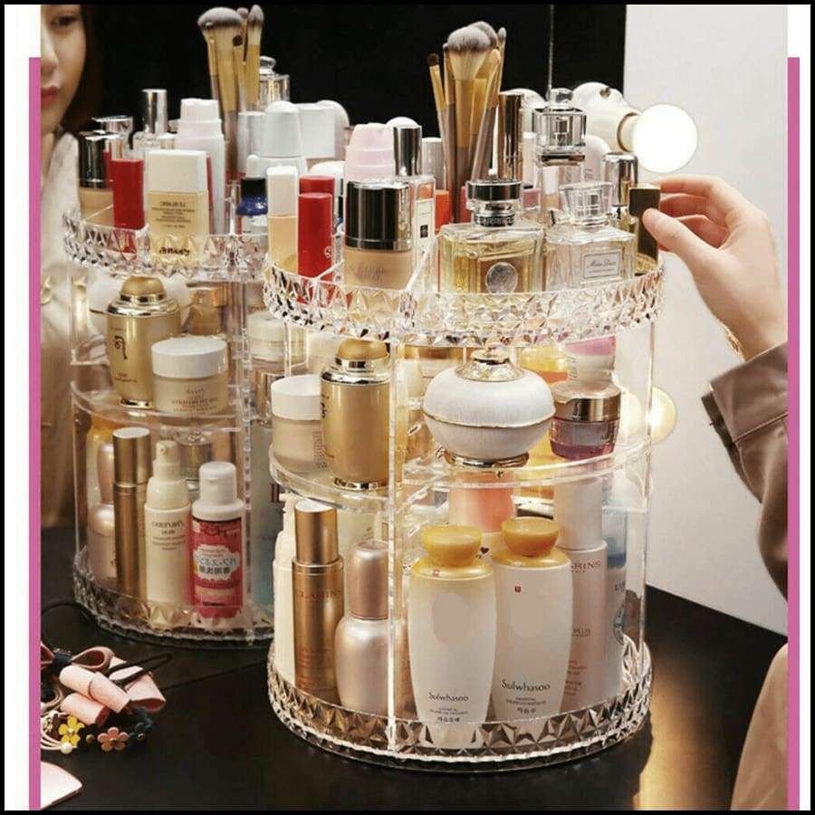 Home Women's Fashions Cosmetic clothing all ladies item 💎 Crystal Clear 360° Rotating Makeup Organizer – Multi-Layer Cosmetic Storage Box for Lipstick, Nail Polish, Perfume & Skincare